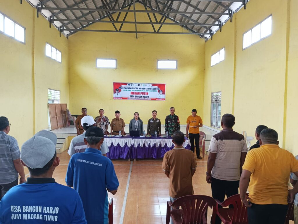 Rapat Pembentukan Kopdes Merah Putih Bangun HarjoBy operatorwebbangunharjo.okut@gmail.com / July 23, 2025 Senin 19 Mei 2025. Bertempat di Balai Desa Bangun Harjo Kec. Buay Madang Timur diadakan Rapat Pembentukan Kopdes Merah Putih Desa Bangun Harjo